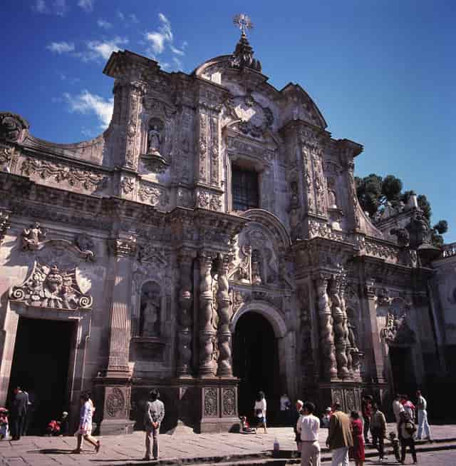 Iglesia La Compañía: This church was constructed by the Jesuits between 1605 and 1765, in the heart of Quito’s historical center. Its elaborate baroque facade was sculpted in stone by indigenous hands. This temple was closed from 1767 to 1807 due to the banishment of Jesuits from Ecuador. It was re-opened by the Chilean friar Camilo Henriquez, from the Order of Buena muerte, who later participated in the independence struggles of his native land.